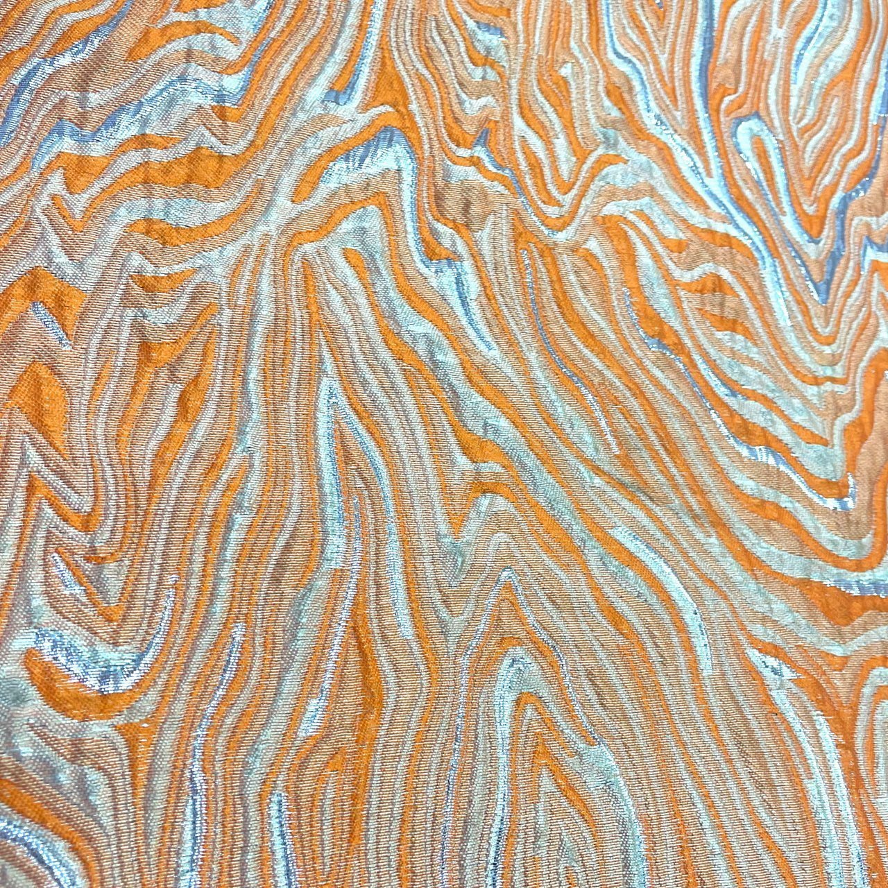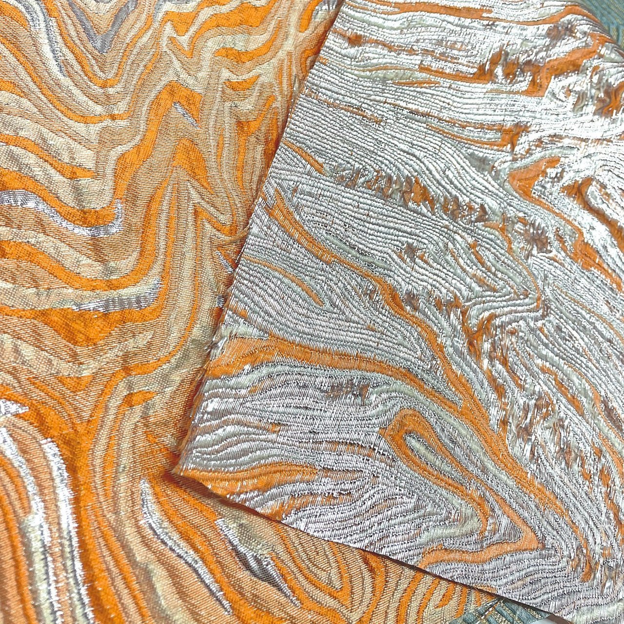 Это декоративная ткань, часто с объемным, выступающим рисунком .При изготовлении используется несколько типов волокон , что позволяет создавать сложные узоры. Несмотря на свою объемность, ткань прекрасно драпируется, выкладывается в нужный силуэт. Используется для пошива пальто, жакетов, костюмов, юбок, платья, как повседневного так и праздничного направления.