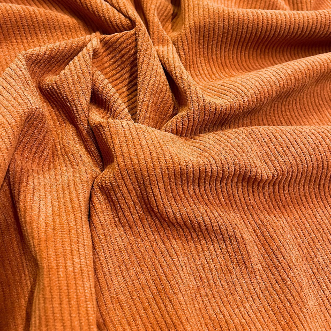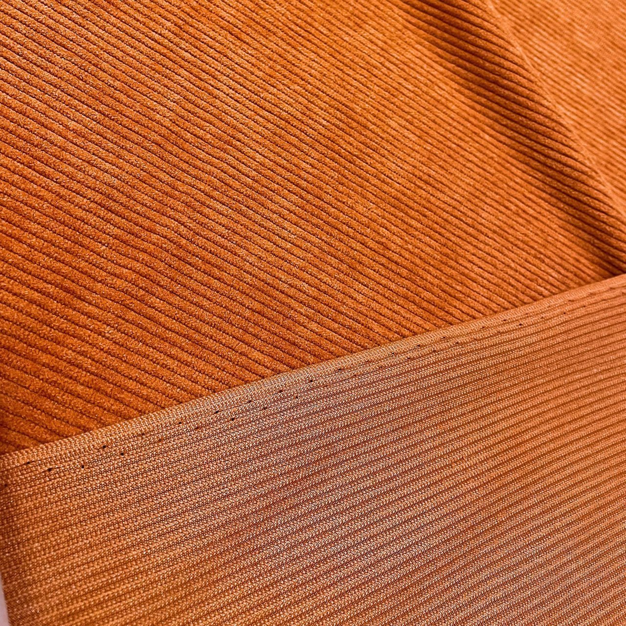 Плотный, и в то же время приятный материал с матовым блеском по лицевой стороне и нежной бархатистой поверхностью. На лицевой стороне классический ворс, создающий фактуру в полоску. Хорошая плотность ткани обеспечивает ее высокую износостойкость. Вещи из вельвета всегда актуальны, удобны в носке и не мнутся. Ткань прекрасно подходит для пошива свитшотов, платьев, юбок, а также спортивных костюмов.